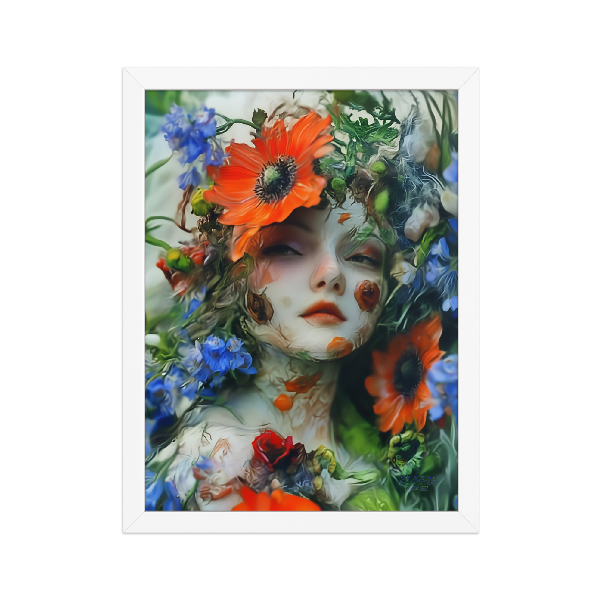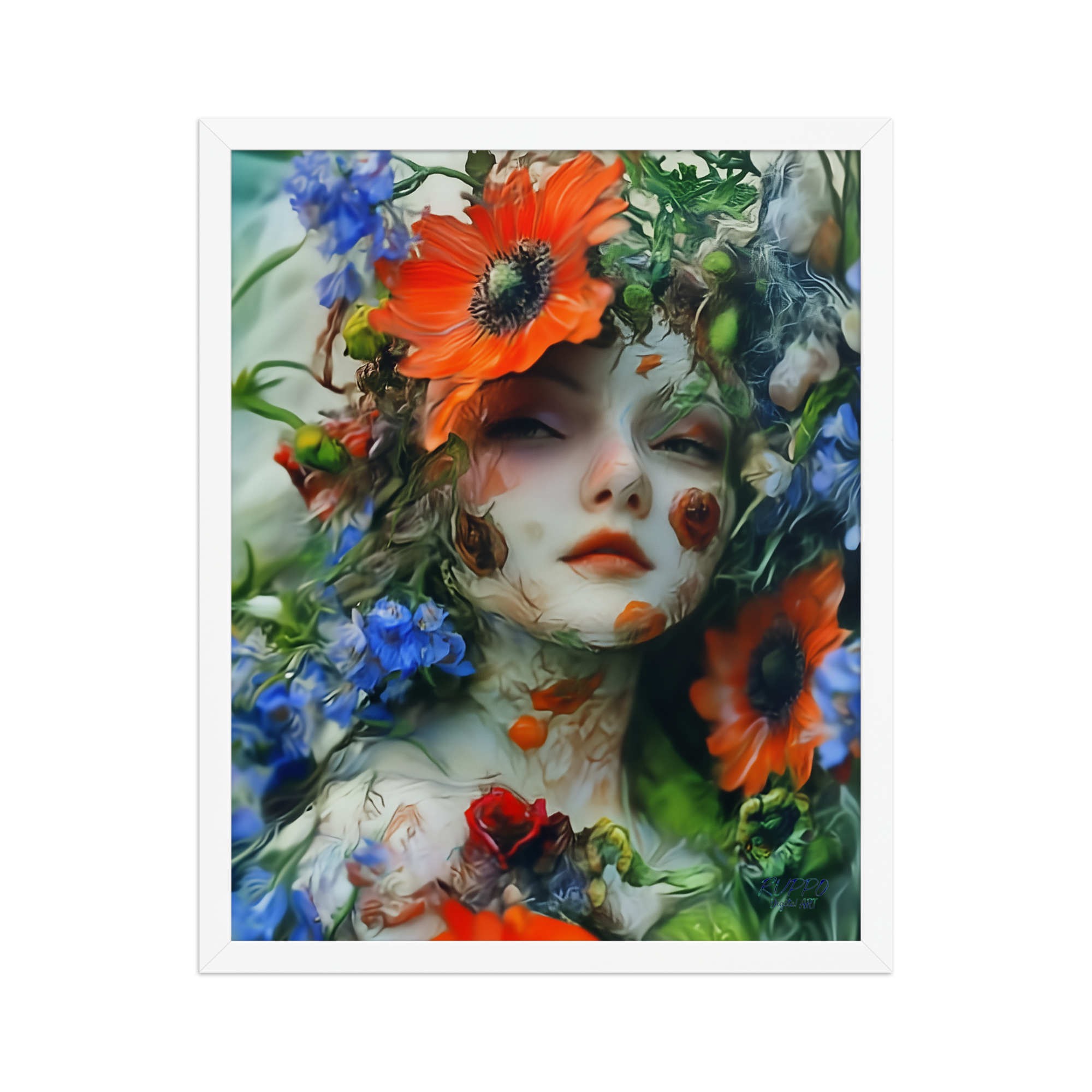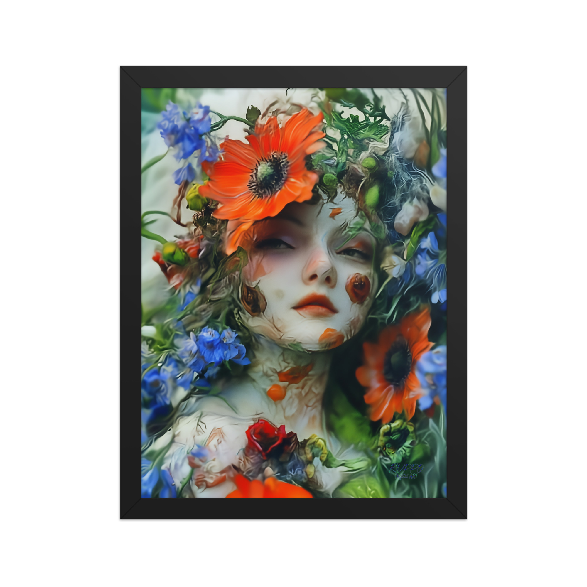 DigitalART Blütengesicht – Gerahmtes Poster aus der Serie „Seelenblüten“ von RUPPO