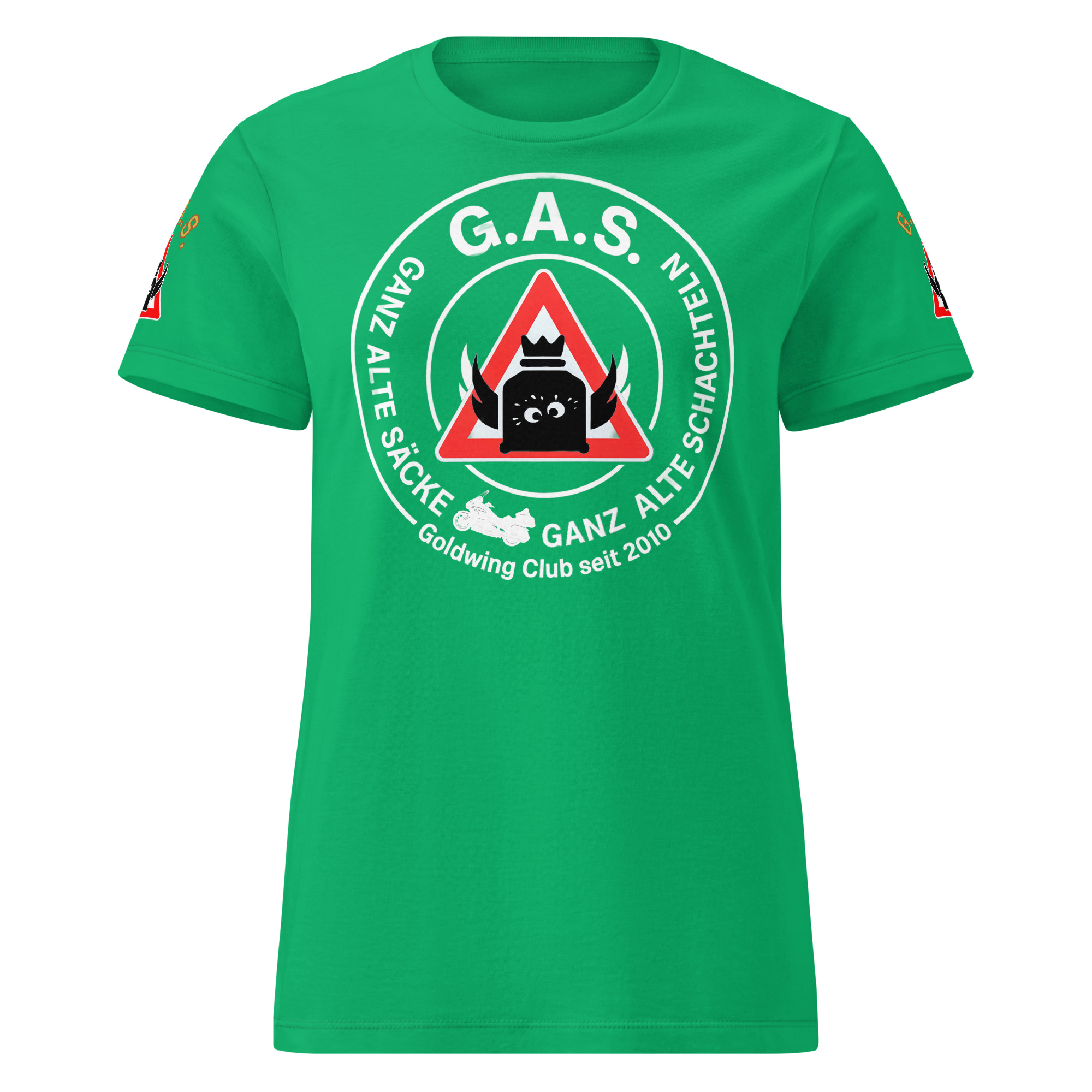 Damen-T-Shirt mit dem „GAS-Stamp“ Motiv – klar, humorvoll und unverwechselbar. Gedruckt erst nach Bestellung.