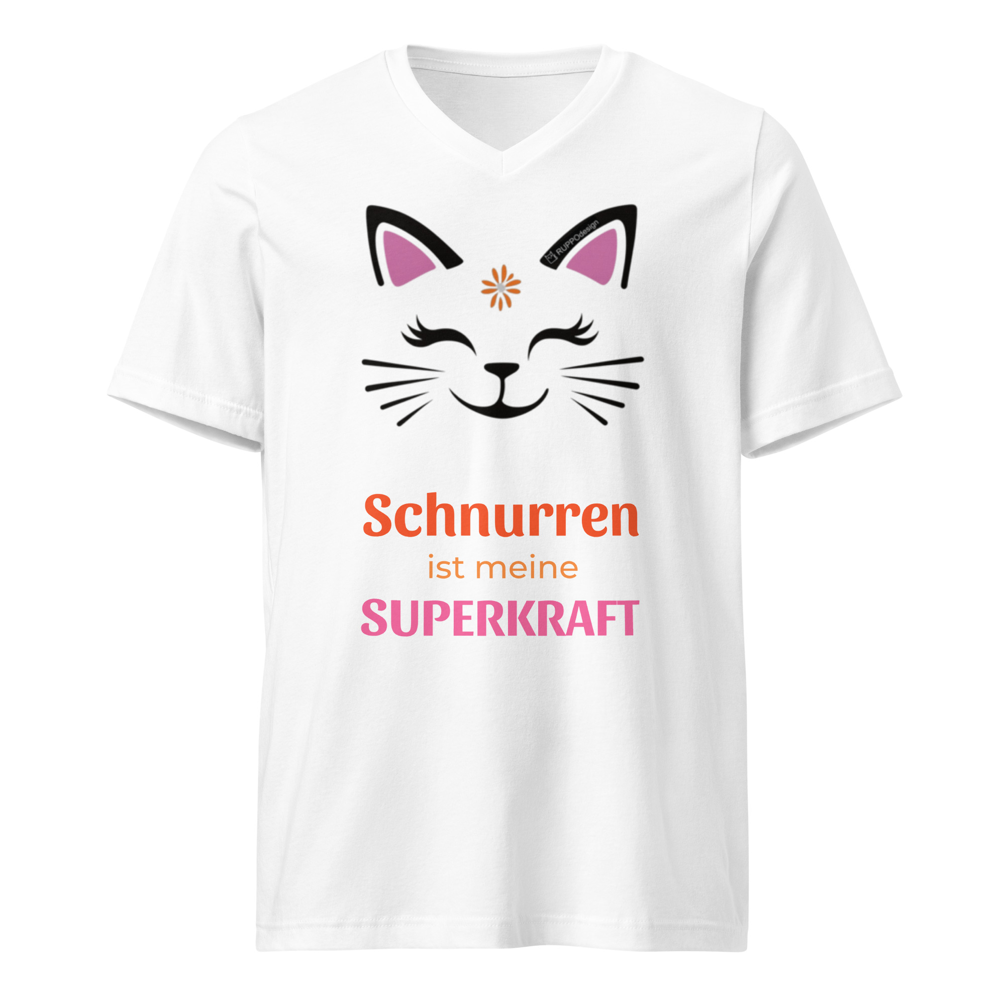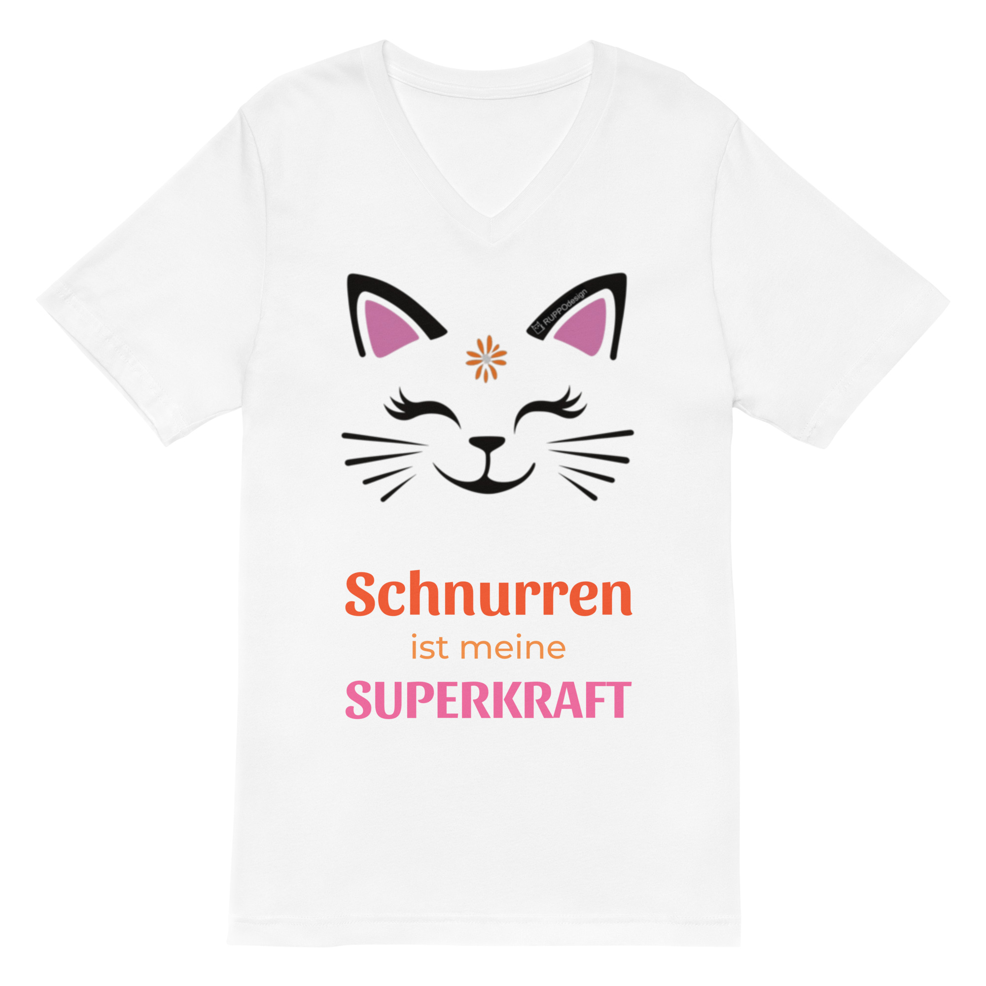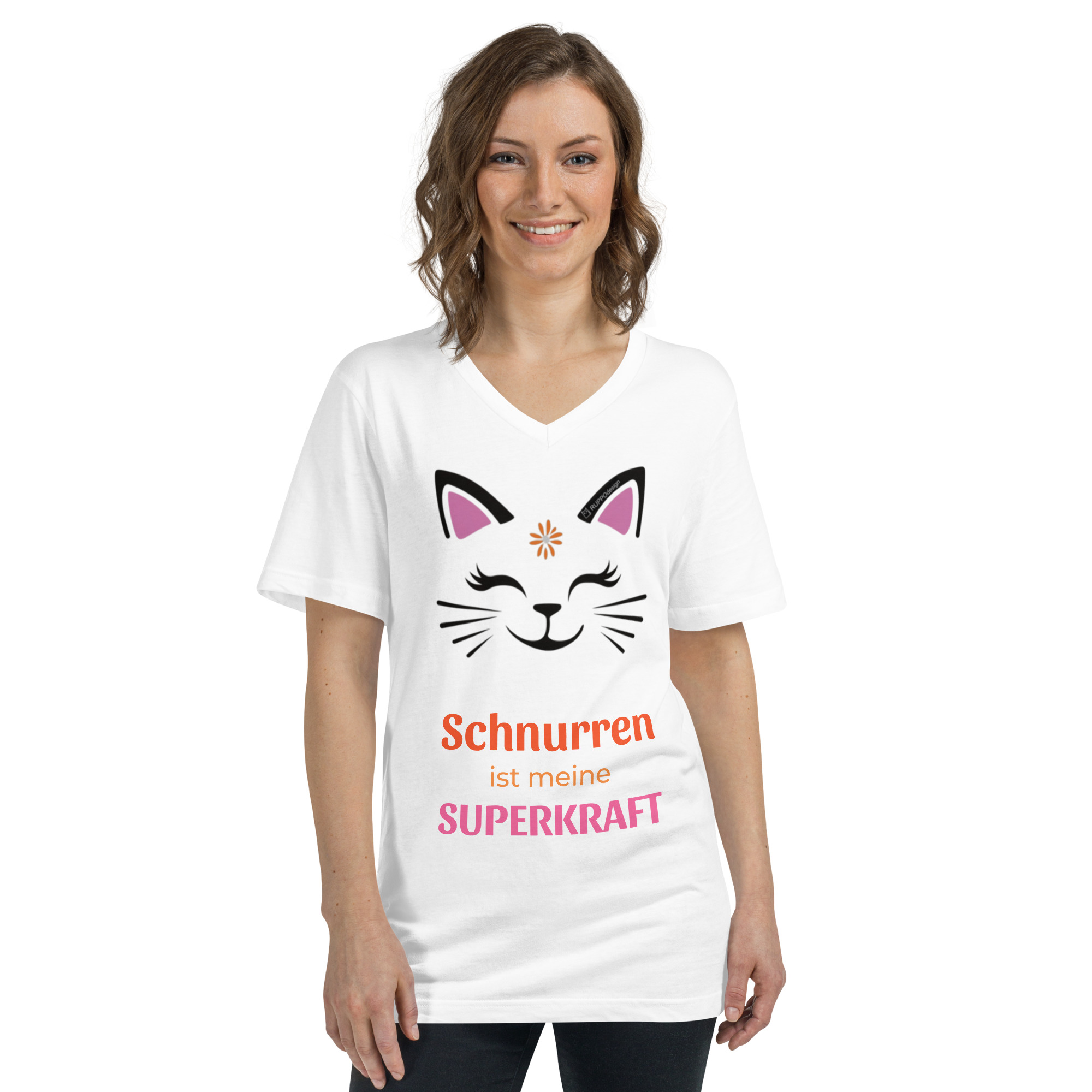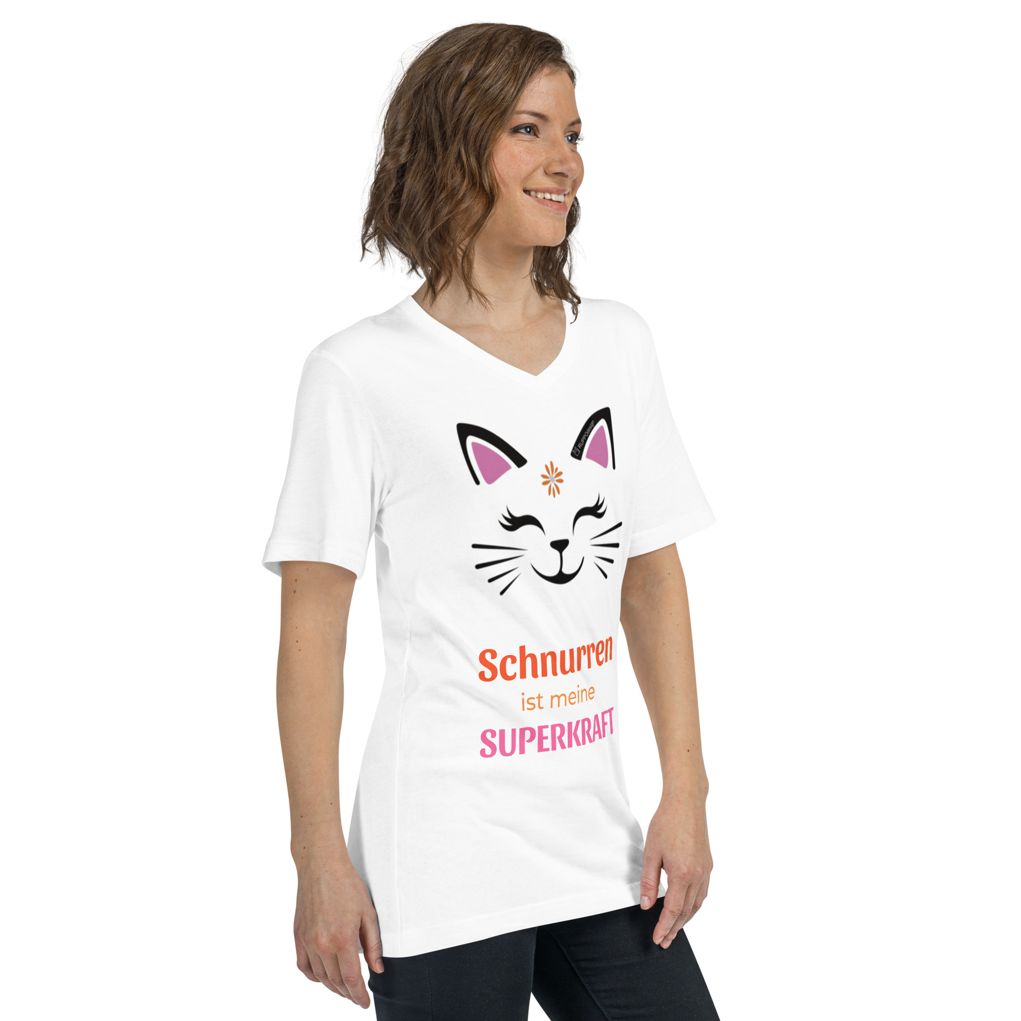 “Purrcat” – T-Shirt mit V-Ausschnitt: Schnurren ist meine Superkraft
