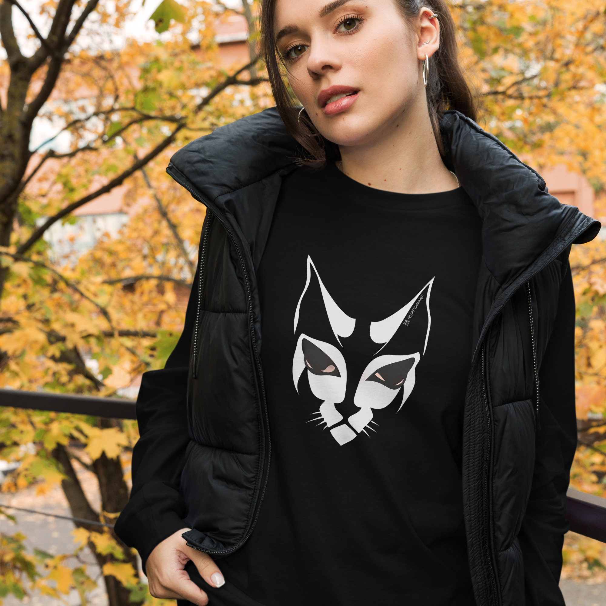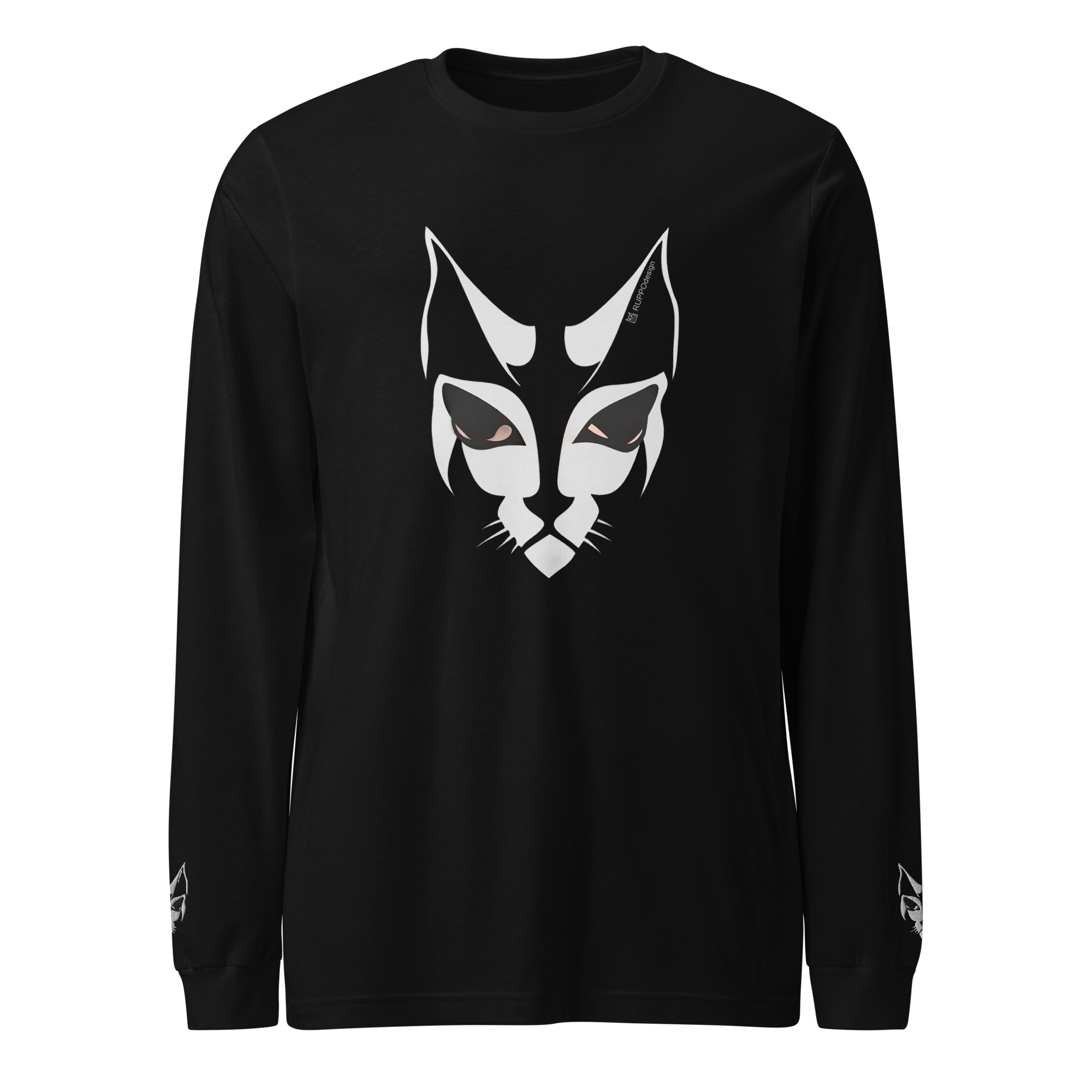 Dieses langärmelige Shadowcat-Shirt ist für Tage, an denen du es ruhig, klar und trotzdem ausdrucksstark magst. Der stilisierte Katzenmasken-Print auf schwarzem Stoff wirkt minimalistisch und stark zugleich – perfekt für alle, deren Stärke keine Bühne braucht.